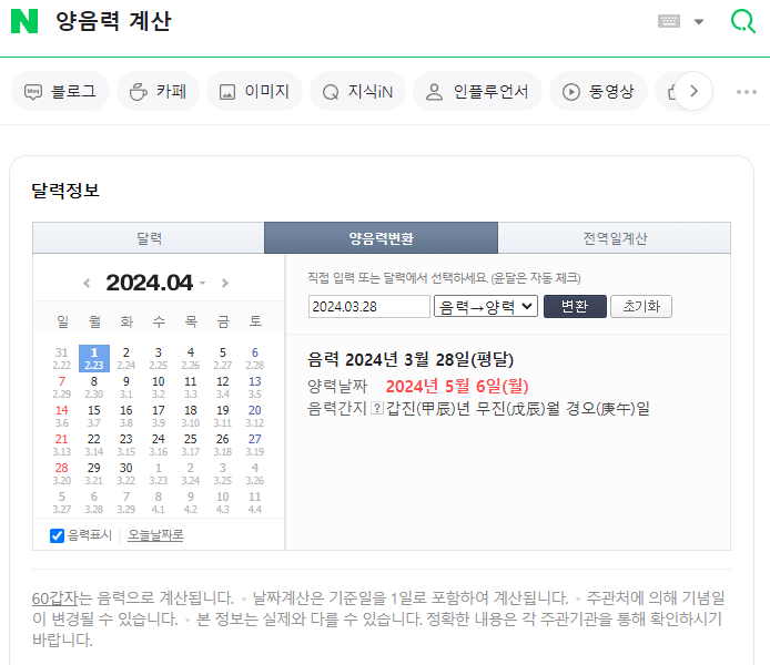 ★ 양력날짜, 음력날짜 변환도 가능하구요~