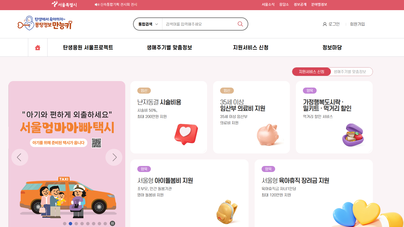 그동안 중앙정부와 서울시 등 여러 곳에 흩어져 있던 임신, 출산, 육아 관련 정보들을 한곳에 모아 제공하여, 부모들이 필요한 정보를 쉽고 빠르게 찾을 수 있도록 돕고 있습니다.