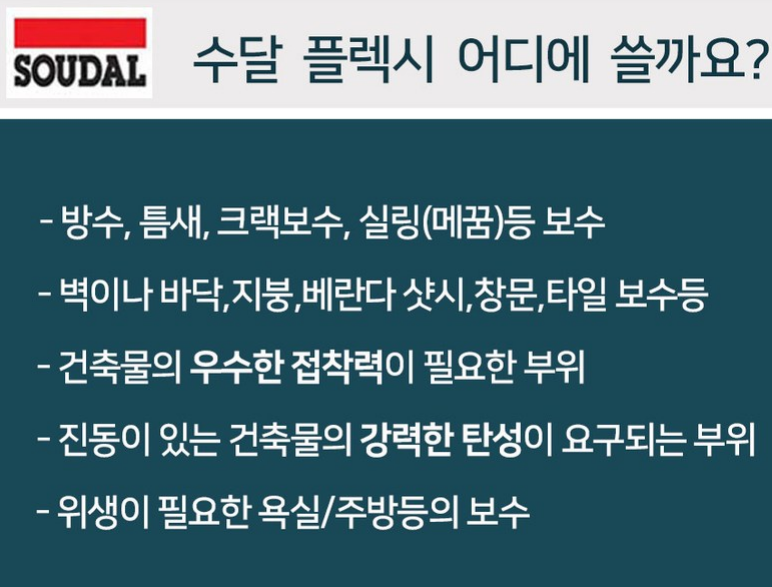 2. 인테리어: 타일, 석재 부착, 틈새 메우기 등 인테리어 작업에도 사용됩니다.