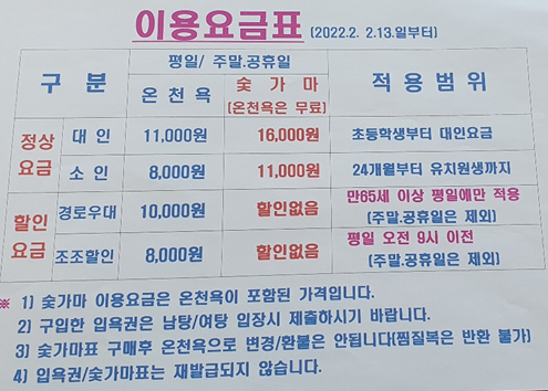 율암온천 가족탕 이용 시 주의사항
