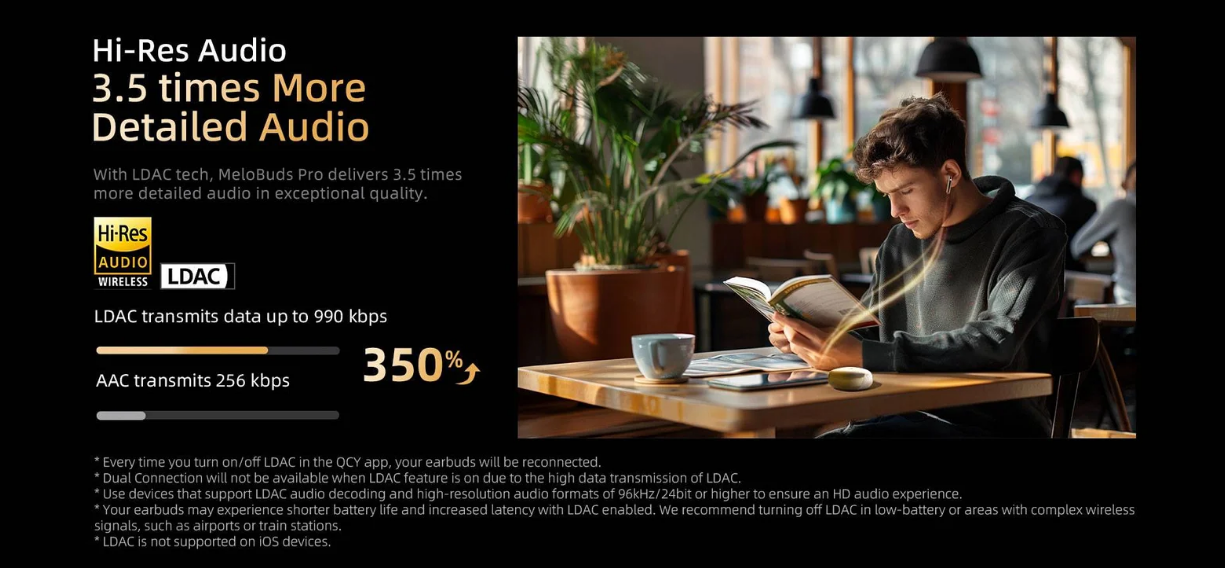 1. LDAC 코덱 지원: 고음질 음원을 손실 없이 전송하여 풍부하고 생생한 사운드를 제공합니다.