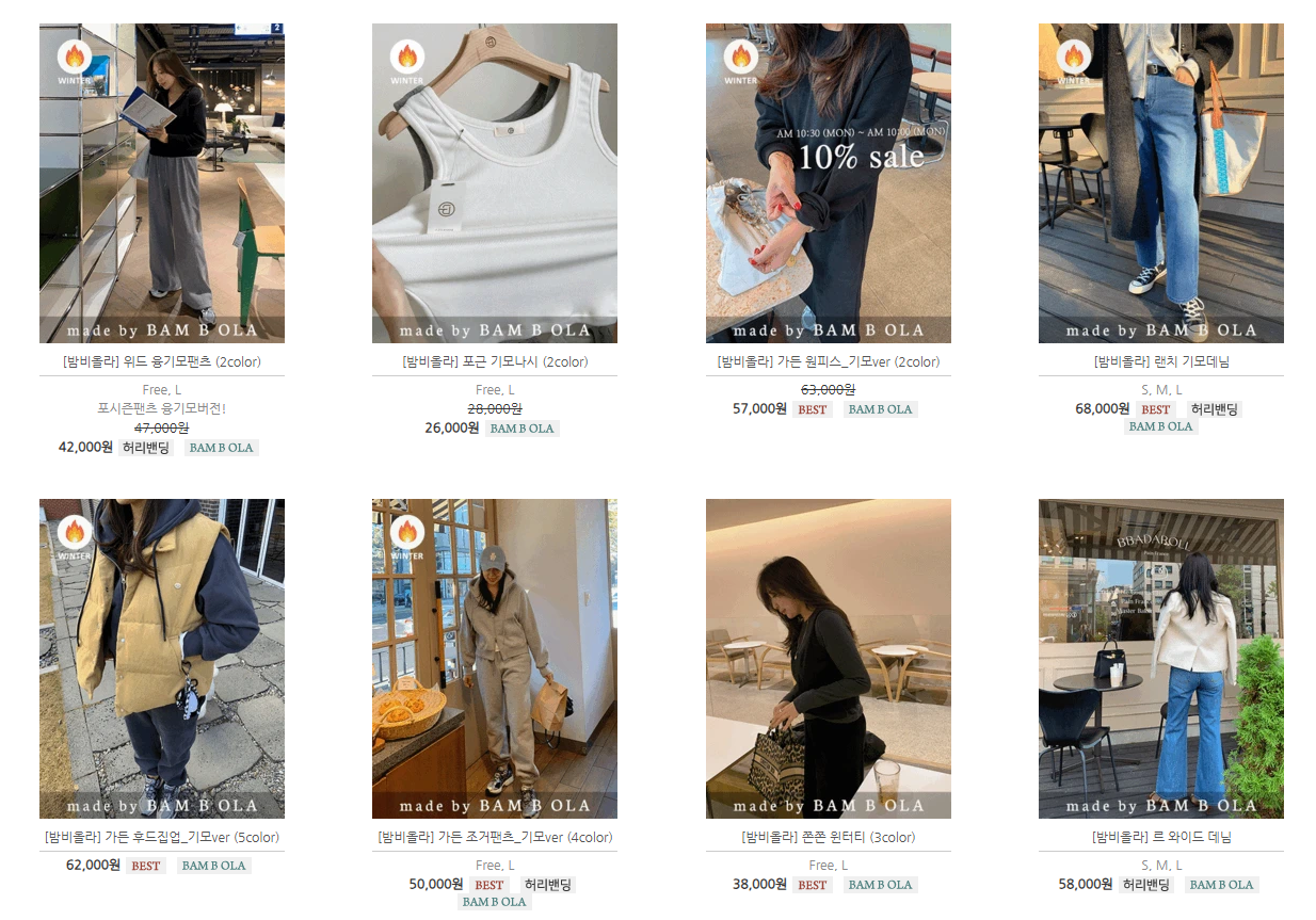 1. 자체제작 브랜드 밤비올라: 트렌디하고 유니크한 디자인의 옷들을 선보입니다.