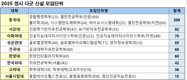 과거에는 상위권 대학들이 주로 가군에 배치되었지만, 2025학년도에는 고려대, 서강대 등 일부 상위권 대학들이 다군에 신설 학과를 배치하면서 다군의 경쟁률이 높아질 것으로 예상됩니다.
