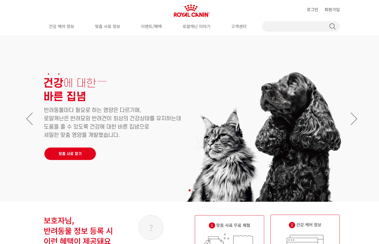 로얄캐닌 유리너리 S/O는 고양이와 강아지용으로 나뉘며, 각각 건식과 습식 사료로 출시됩니다.