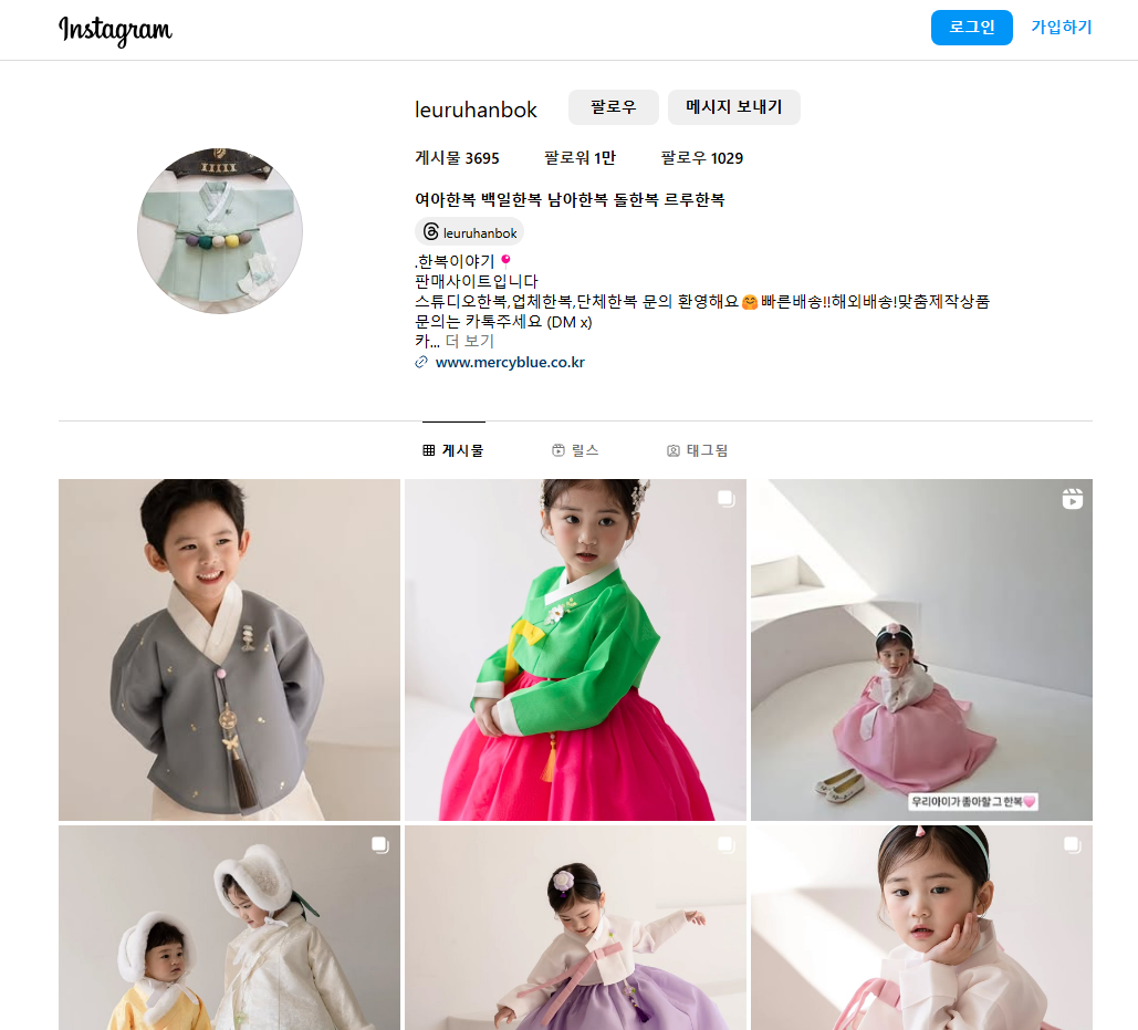 르루한복은 아기부터 어린이까지 다양한 연령대를 위한 한복을 판매하는 곳이에요.