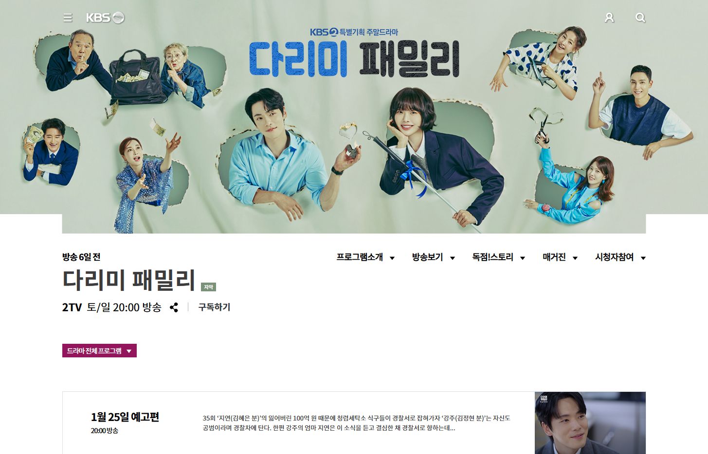 공식 홈페이지: https://program.kbs.co.kr/2tv/drama/darimifamily/pc/index.html