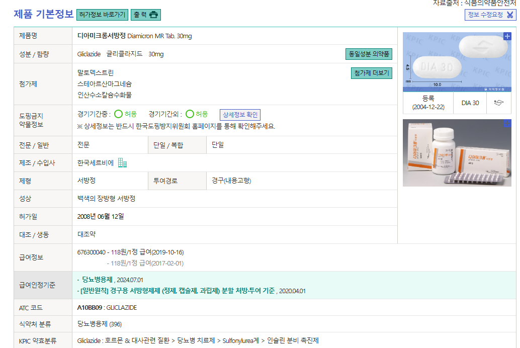 설폰요소계 약물의 일종으로, 혈당을 낮추는 데 효과적인 약제 중 하나입니다.