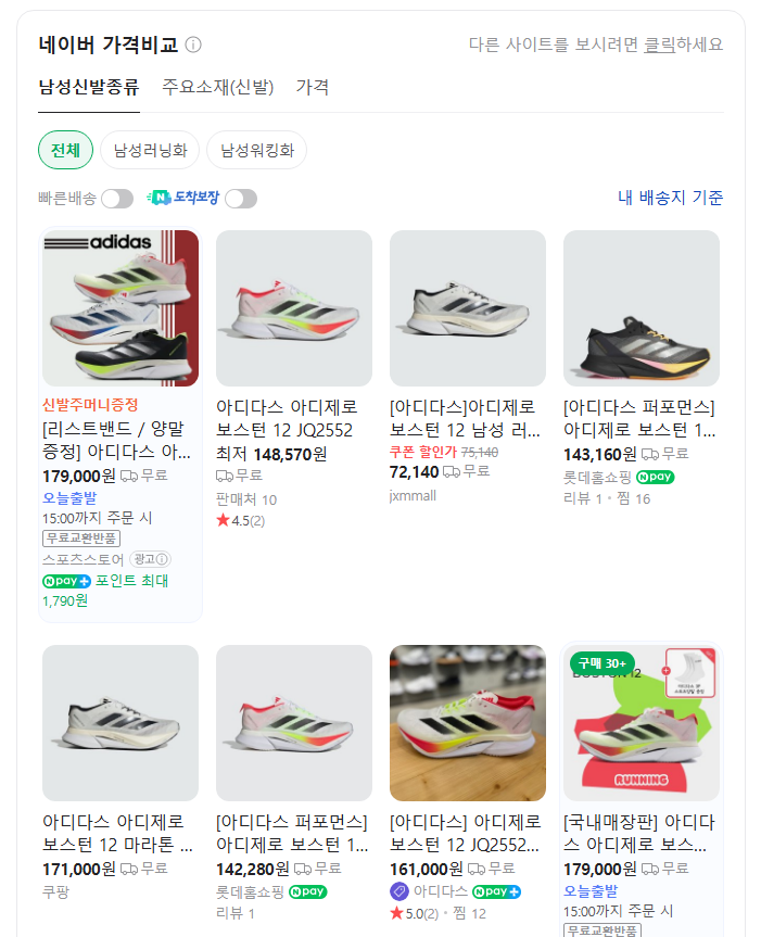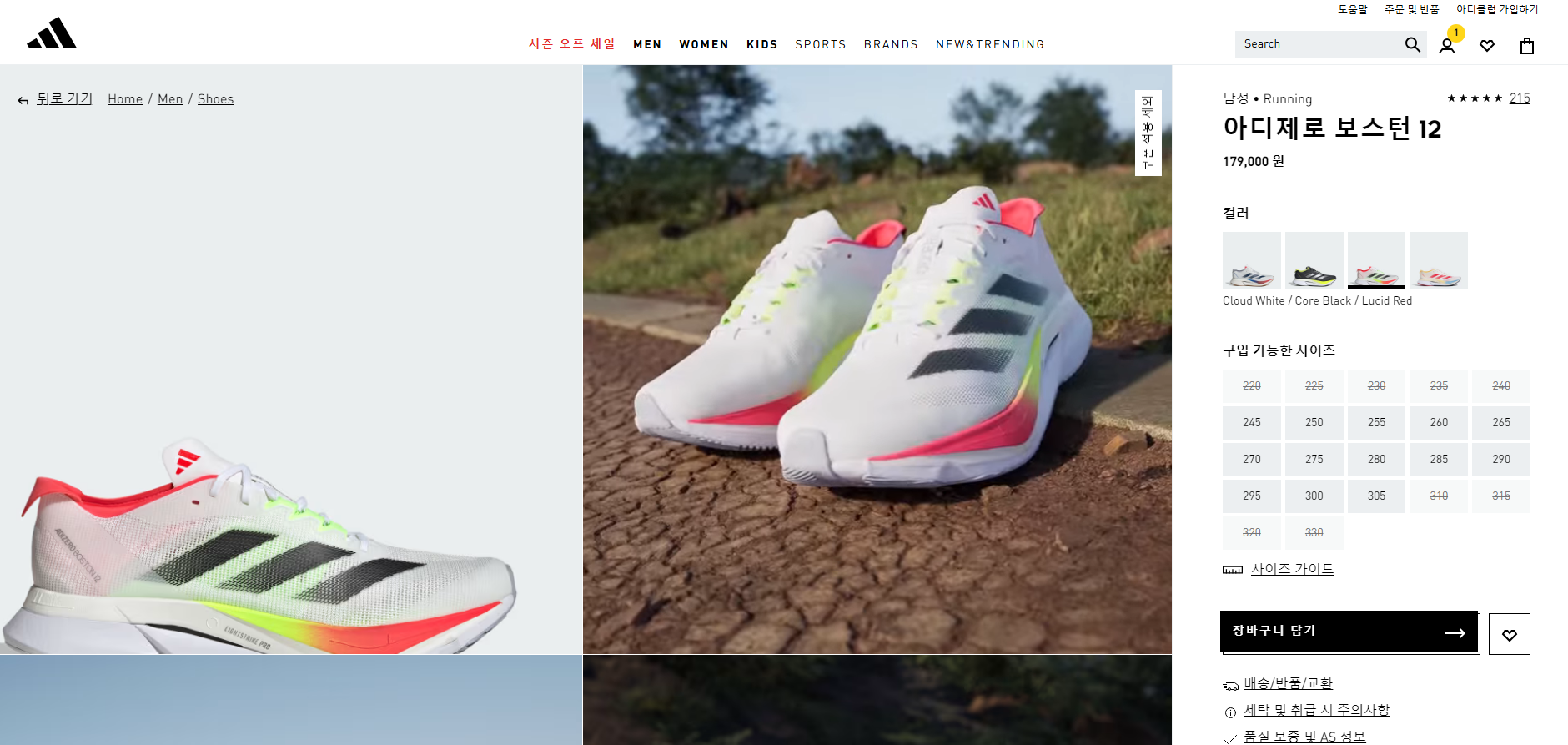 아디제로 보스턴 12는 아디다스에서 출시한 인기 러닝화 모델 중 하나입니다.