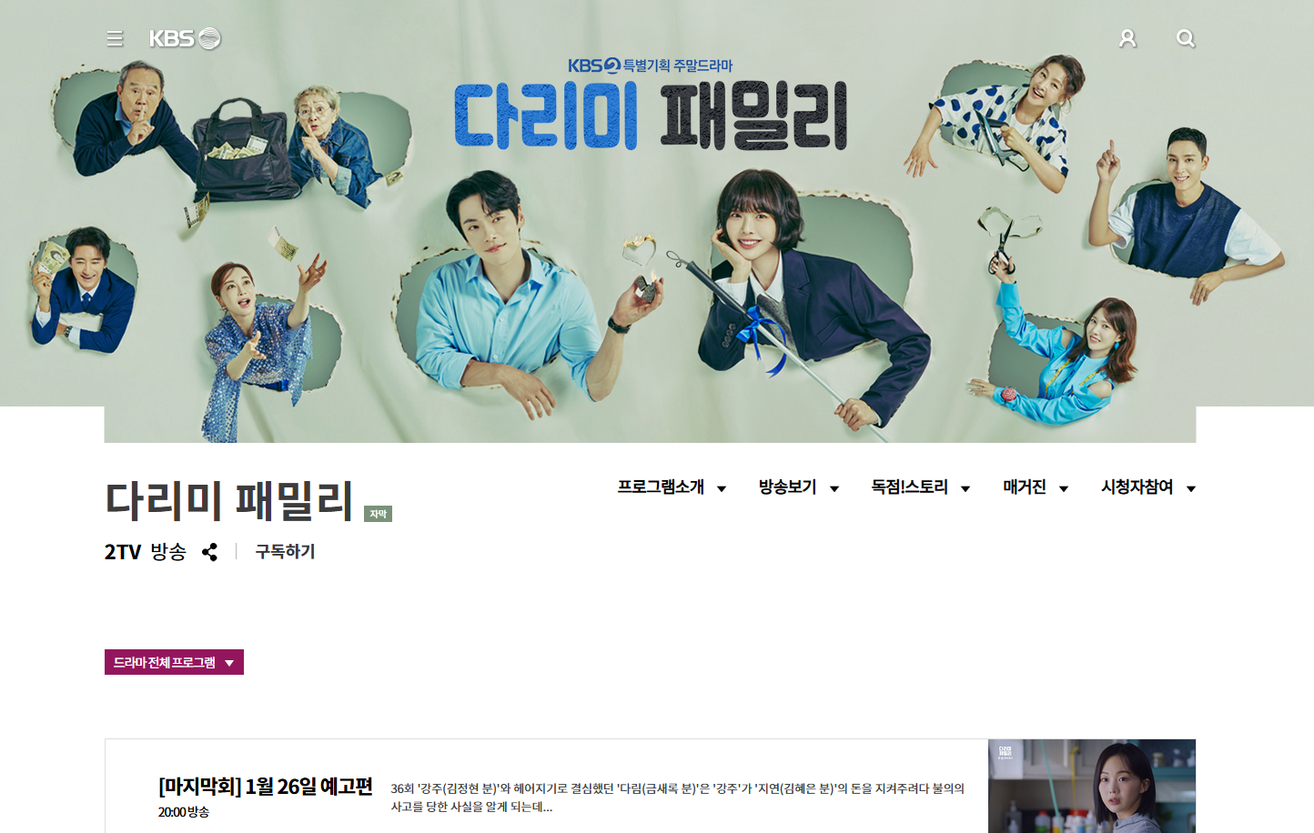 공식 홈페이지: https://program.kbs.co.kr/2tv/drama/darimifamily/pc/index.html