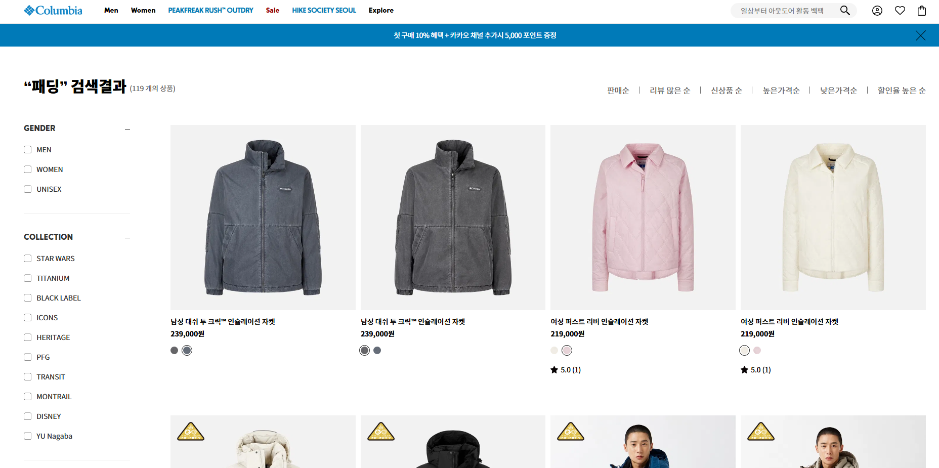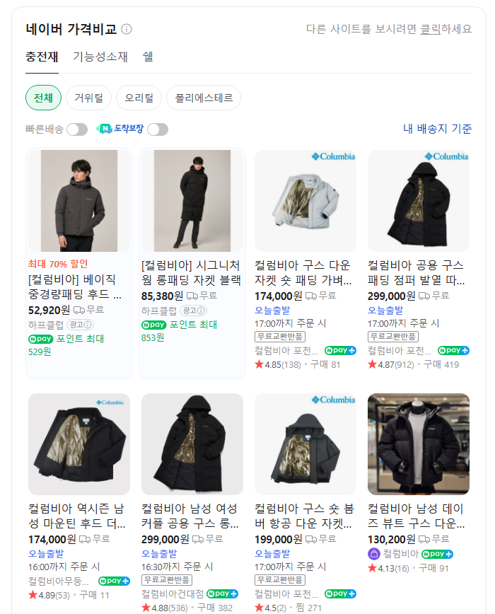 공식 홈페이지: https://www.columbiakorea.co.kr/search/search.asp?sWord=%ED%8C%A8%EB%94%A9