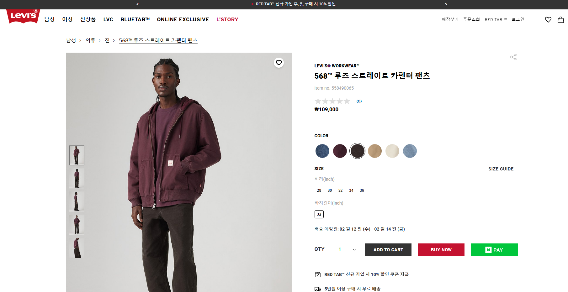 공식몰: https://www.levi.co.kr/%EB%82%A8%EC%84%B1/%EC%9D%98%EB%A5%98/%EC%A7%84/568_%EB%A3%A8%EC%A6%88_%EC%8A%A4%ED%8A%B8%EB%A0%88%EC%9D%B4%ED%8A%B8_%EC%B9%B4%ED%8E%9C%ED%84%B0_%ED%8C%AC%EC%B8%A0/558490065.html