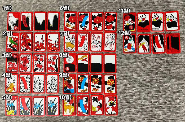 1. 화투 한 벌: 48장의 화투 카드가 필요합니다.