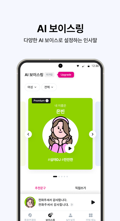 단순한 기계음 대신 좋아하는 노래나 멘트로 전화를 더욱 특별하게 만들 수 있죠.