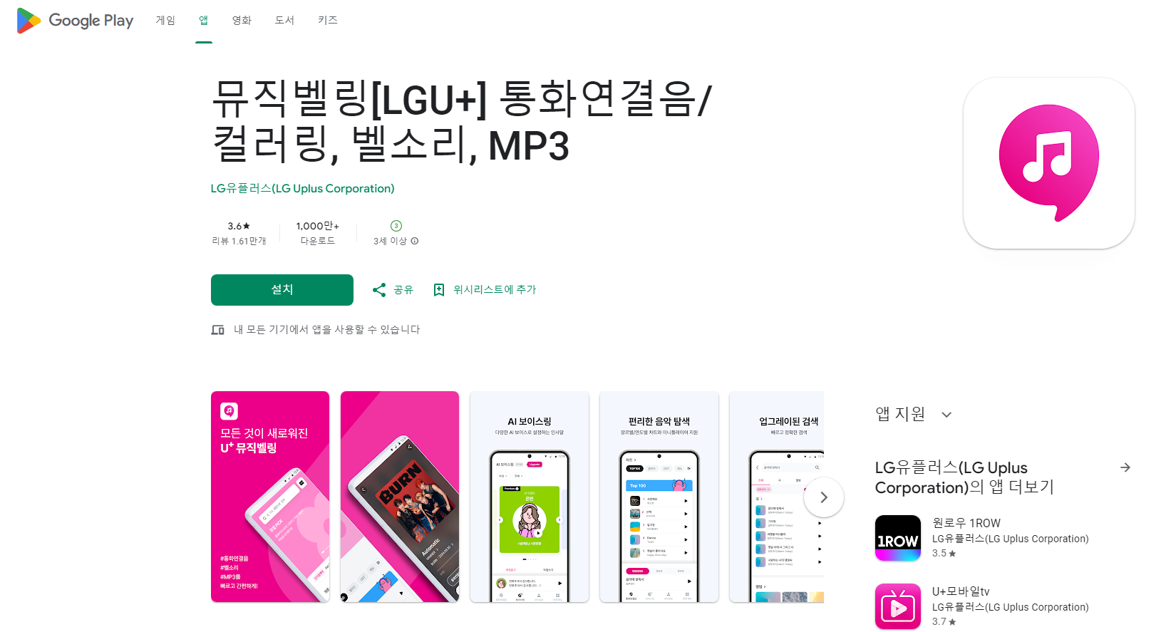 구글 플레이스토어: https://play.google.com/store/apps/details?id=com.lgu&pli=1