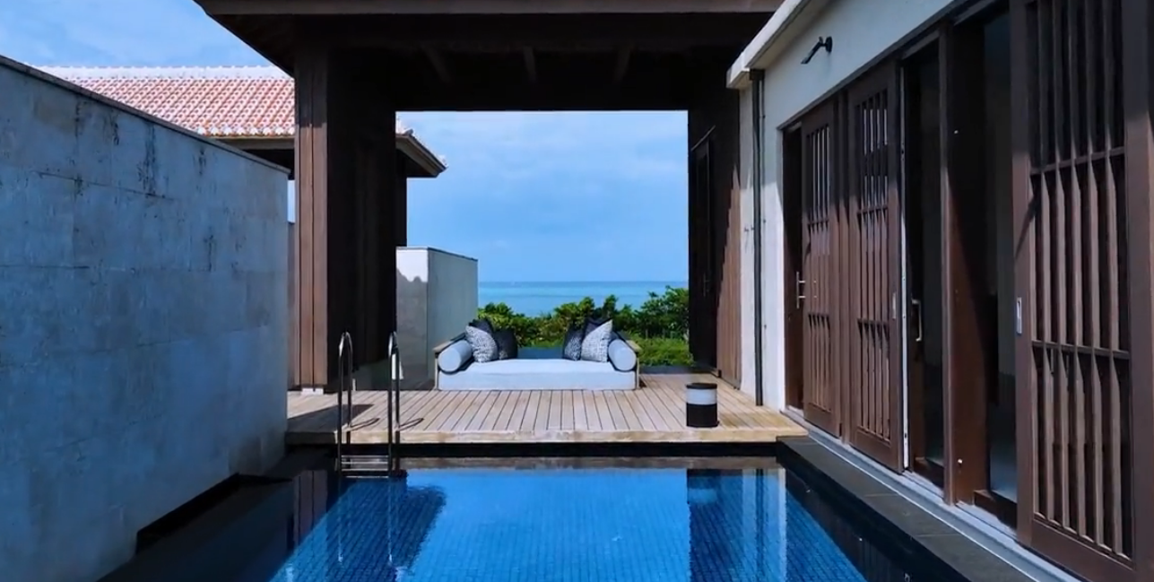 객실 주변에 '구스크 월'이라 불리는 담장을 둘러 프라이빗한 공간을 조성했으며, 오키나와의 전통 건축 양식을 현대적으로 재해석한 인테리어가 특징입니다.