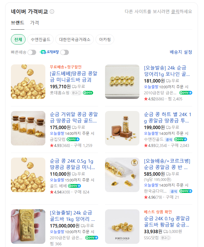 - 금은방: 가까운 금은방에서 땅콩금 구매 가능 여부를 문의해 보세요.