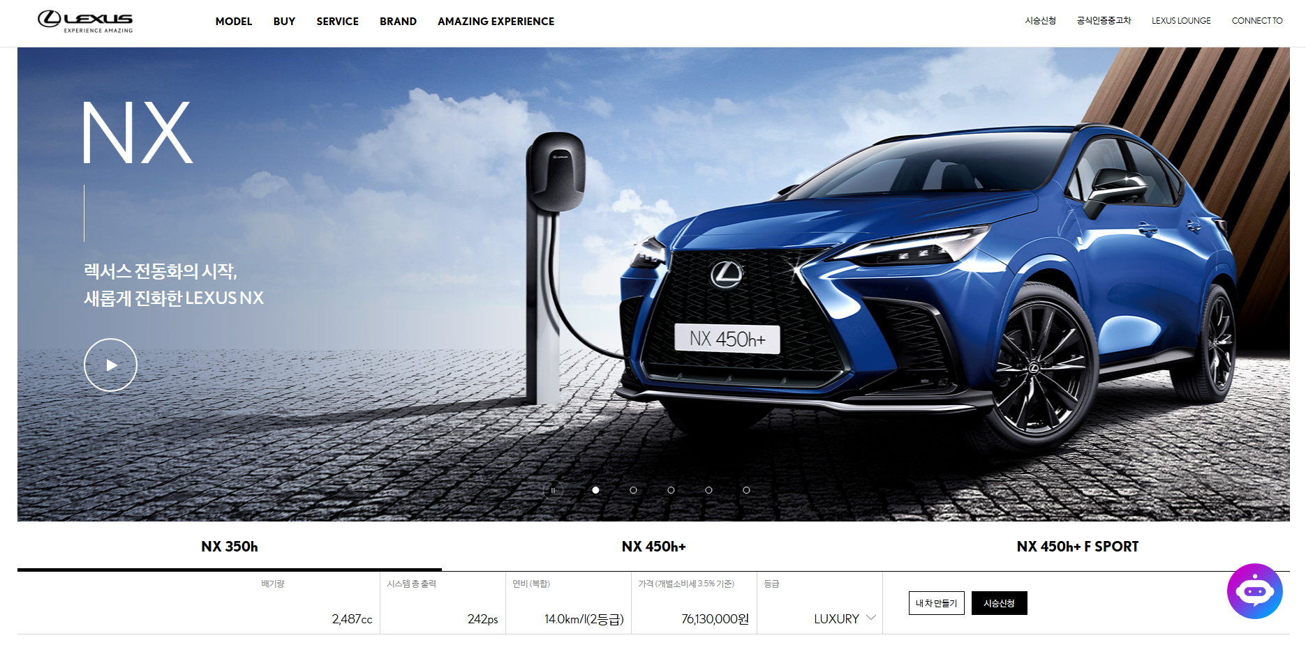 공식 홈페이지: https://www.lexus.co.kr/models/NX-350h/#/design