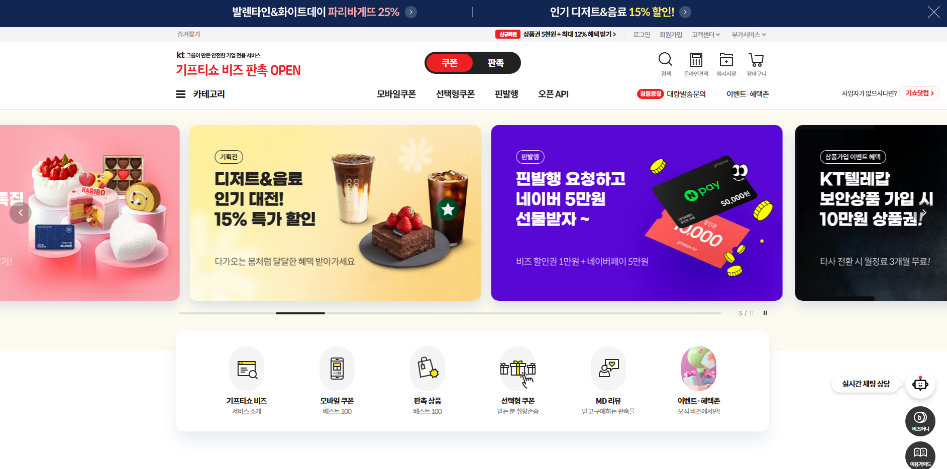 - 기프티쇼 비즈는 기업 고객을 위한 서비스이므로 개인 고객은 이용이 제한될 수 있습니다.