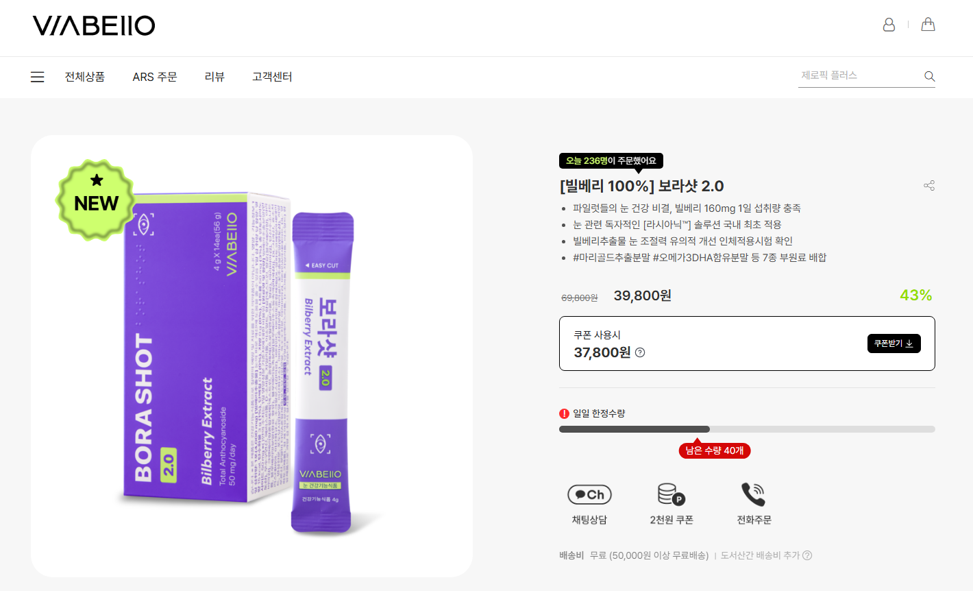공식 홈페이지: https://viabello.co.kr/shop/?idx=206