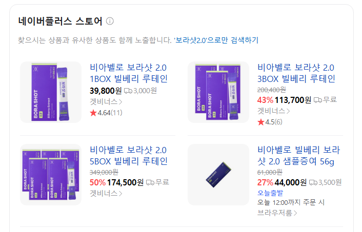 - 보라샷 2.0은 건강기능식품으로, 의약품이 아니므로 질병의 예방 및 치료를 목적으로 섭취해서는 안 됩니다.