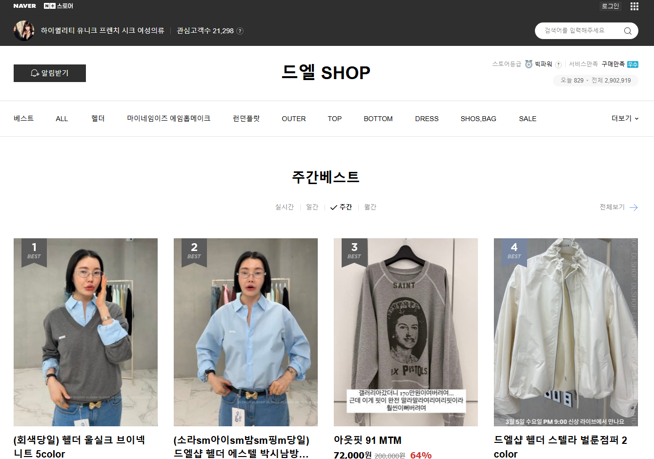 - 다양한 스타일의 여성 의류 및 잡화 판매