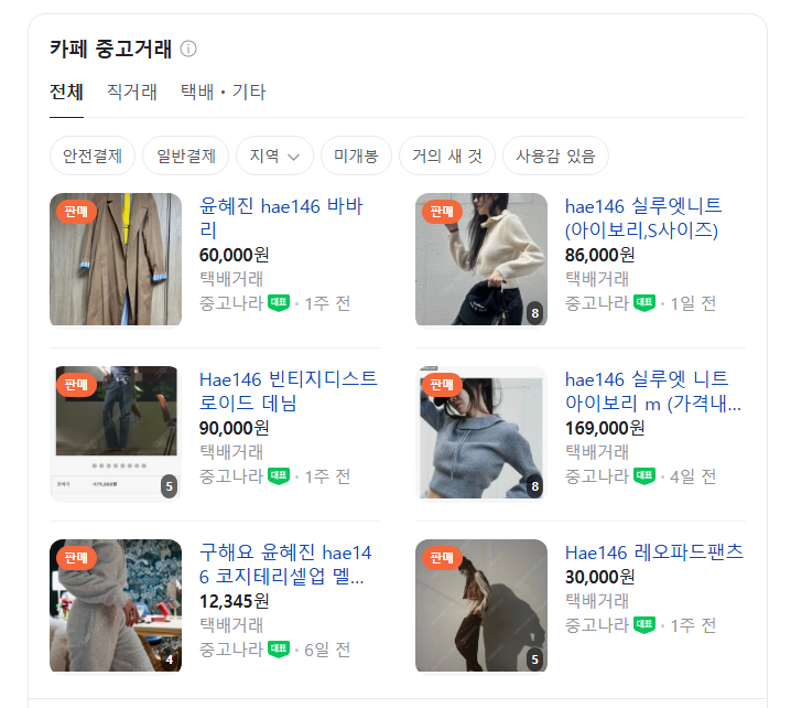 - 중고거래 플랫폼인 번개장터에서 HAE146의 상품들을 찾아 볼 수 있습니다.
