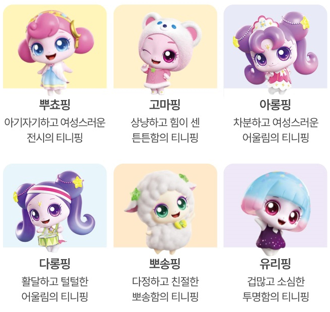 - 뽀송핑과는 다르게 귀여움을 강조하는 티니핑입니다.