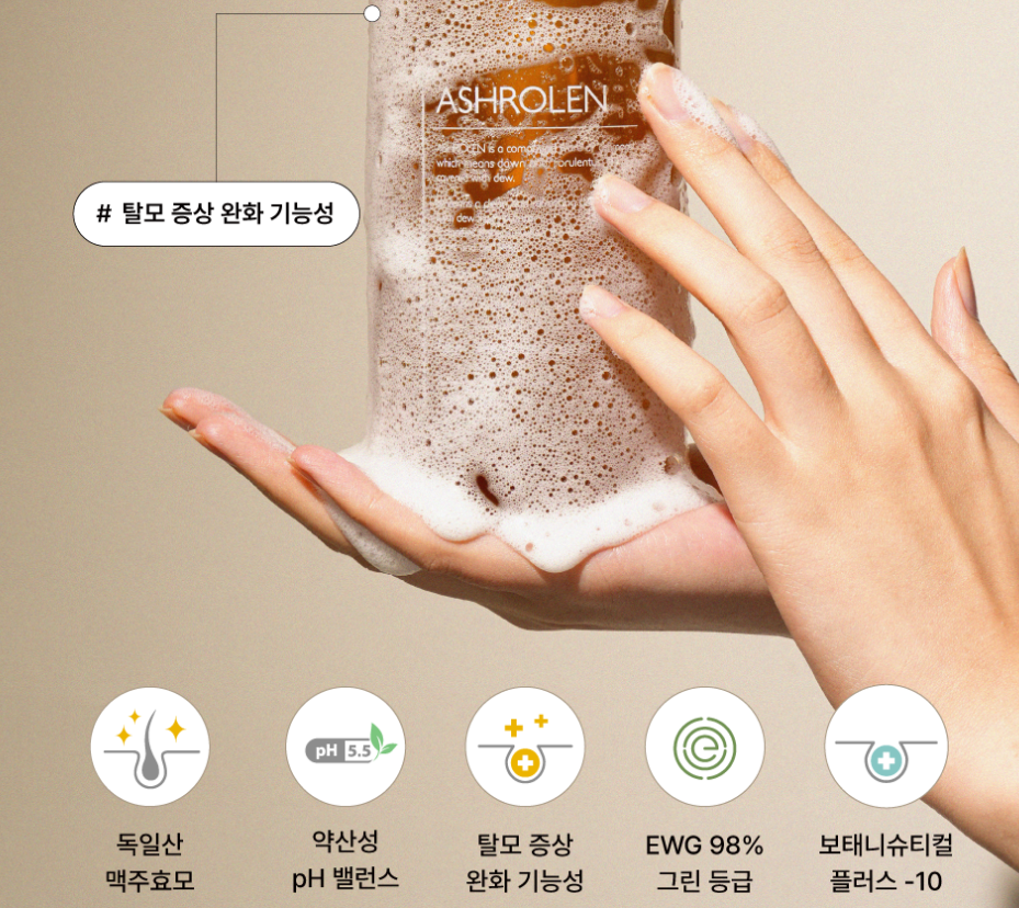 애쉬로렌 ASHROLEN Official Online mall, 맥주효모샴푸, 헤어샴푸, 헤어케어, 스킨케어