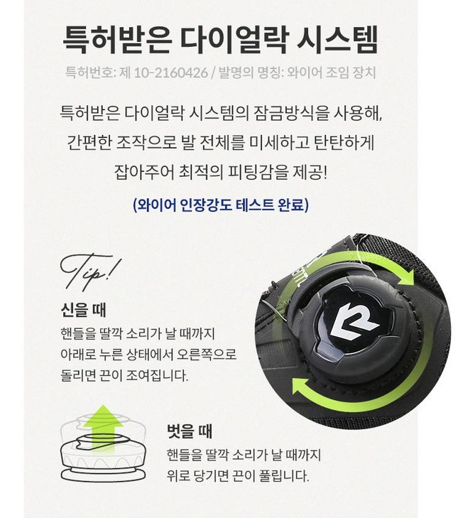 - 다이얼 형식으로 신발끈을 조절하여 편리하게 신을수 있습니다.