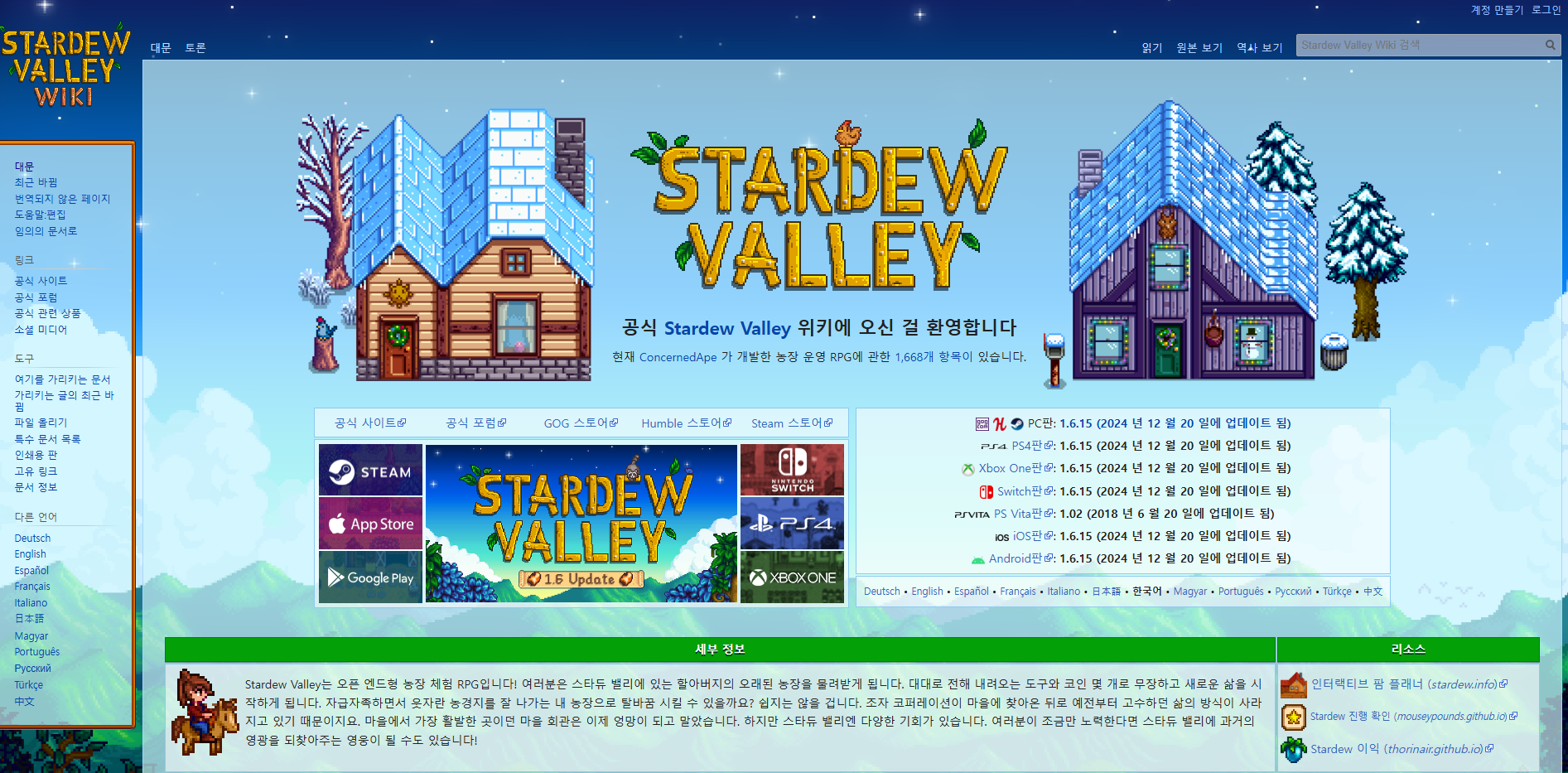 공식 홈페이지: https://ko.stardewvalleywiki.com/Stardew_Valley_Wiki
